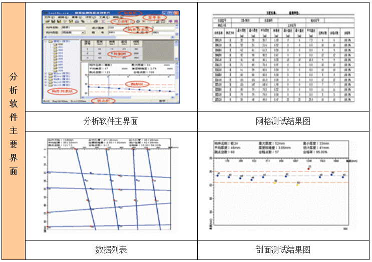 三輪式掃描系統(tǒng),無邊界剖面、網(wǎng)格掃描模式,可自動測量鋼筋間距,實時顯示鋼筋分布圖;